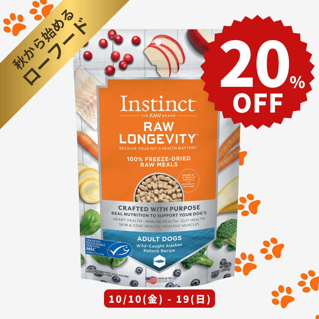 【限定セール】インスティンクト 成犬用ローロンジェビティ フリーズドライフィッシュ 269g