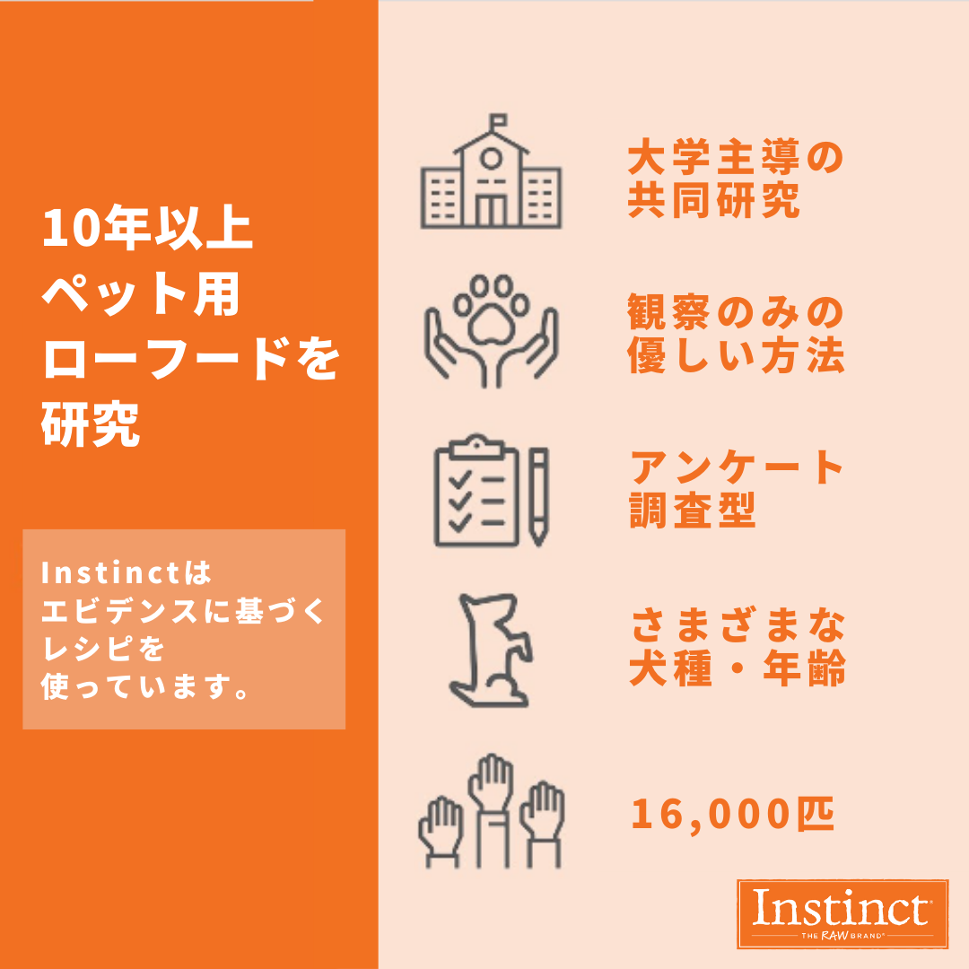 理想的な食事量は下の表を目安に、ペットの最適な状態に合わせて与えてください。清潔で新鮮な水がいつでも飲めるようにしてください。食事の水分量を増やすため、ローフードまたはウェットフードを与えることをお勧めします。他のペットフードからインスティンクトのペットフードに切り替える際は、現在与えているフードに少しずつ混ぜ、5~7 日かけて徐々に量を増やしてください。