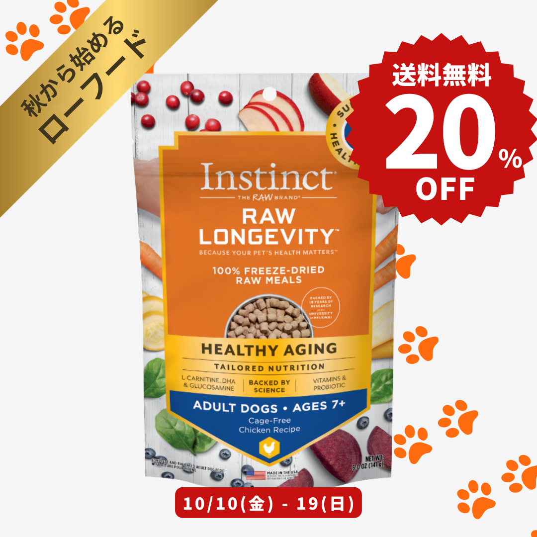 【限定セール】送料無料!インスティンクト シニア犬用ローロンジェビティ フリーズドライチキン 141g
